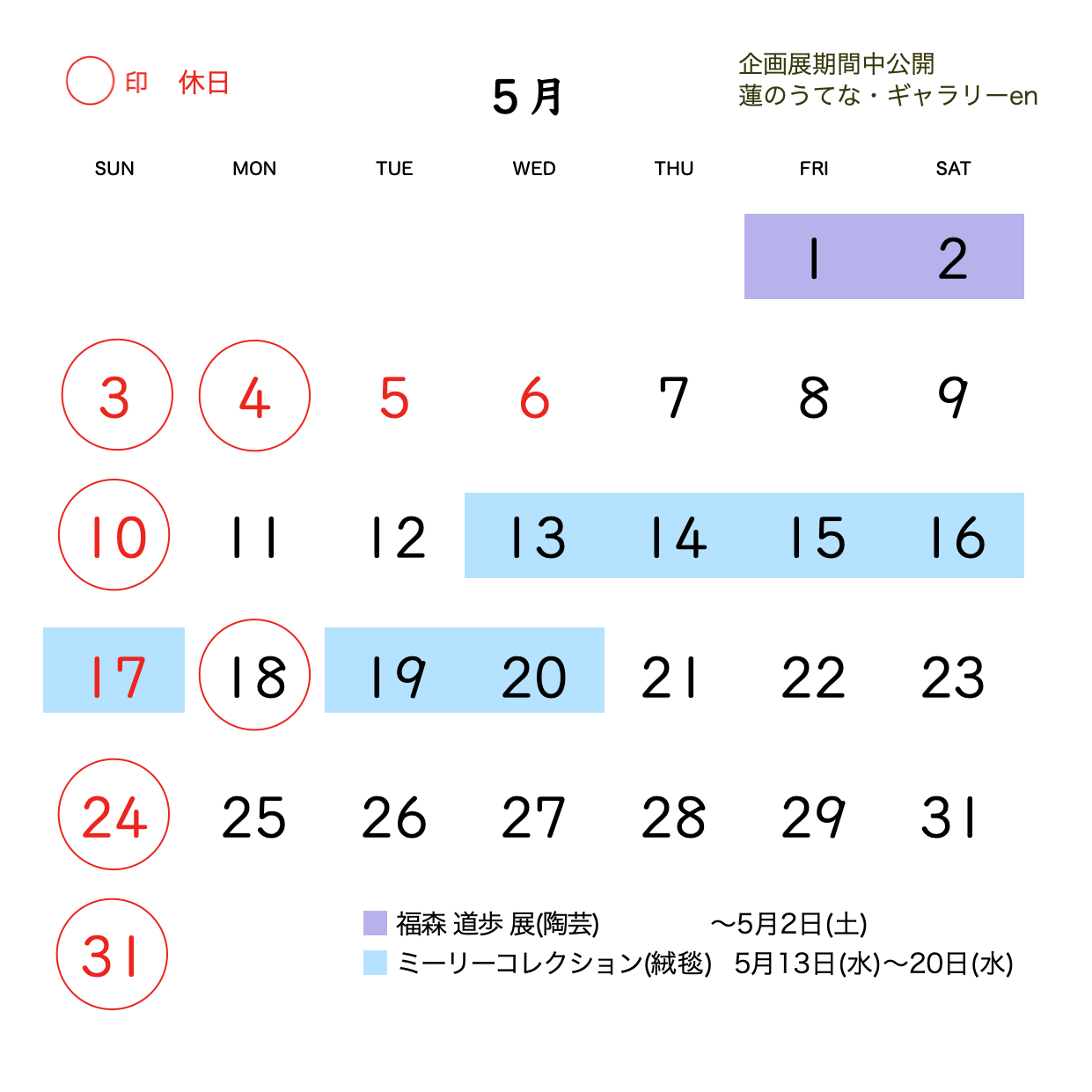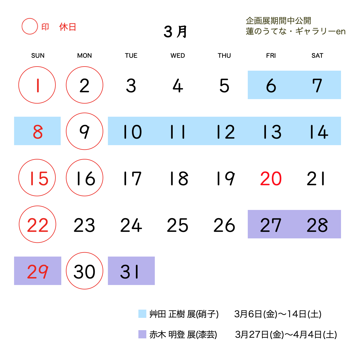 ( 定休日 ) 日曜・第1・3月曜、ギャラリーの期間中は変更する場合もございます