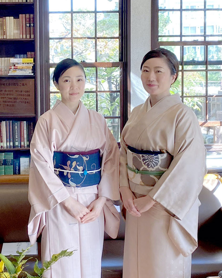 エピローグ:蓮井愛子 資料館にて、私のたどたどしい質問に笑顔で応じてくださる、おふたりの後ろに初代・二代目さんの面影を見るようなひと時でした。 今回おふたりとの対談を通し、洛風林さんの帯が三代に渡り着物愛好家に好まれる所以は、いつの時代にも柔軟に世界中の美しいモノに目を向け、学び、結ぶ女性を想像しながら帯という形に落とし込んでいるからではないかと思いました。「真実に美しいものは常に新しい」という言葉には普遍的な美の存在と同時にいつの時代にも美しいものに対しての飽くなき探求心が籠められているのではないでしょうか。 とても学びの多い、温かい、素敵な時間を過ごすことができ、心から感謝の日でした。 |
