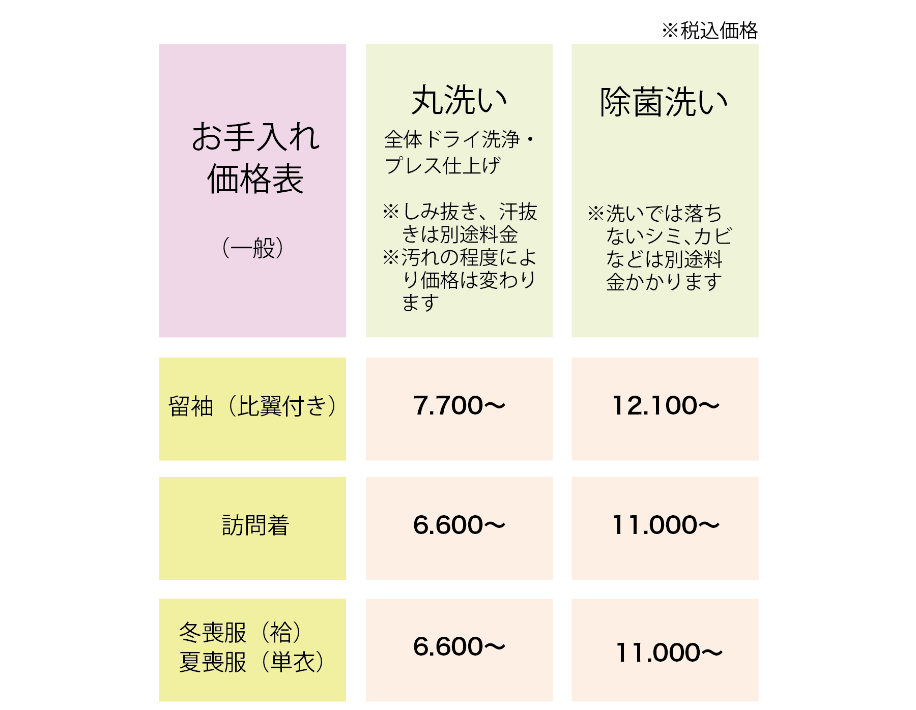 丸洗いの他、部分的なしみ抜き、プレス(しわのばし)も承ります