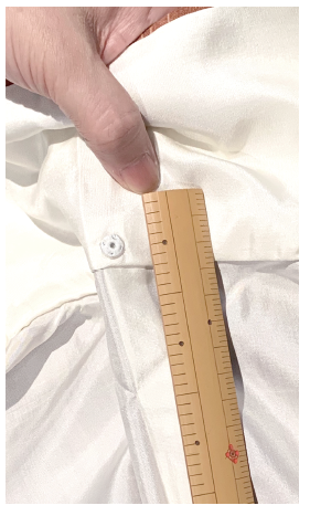 とよく言われますが、いろいろ試して着なれてくると腰紐の位置は「ここしかない!」というのが分かってくるはずです。 位置が決まれば褄下の寸法を確認しましょう。 褄下の寸法は衿先から6~8㎝上に腰紐がかかる位がお端折りの下線に収まり見た目も美しく、着崩れもしにくくなります。 貴方の着やすく美しい寸法を探しましょう。 |