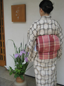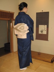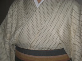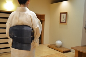 | 帯は、榀布。木の皮で織ったもの。 時を経ることによって、あじわいの増す素材です。 長い間、大切に扱われてきたものの美しさはひとしお |