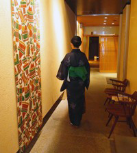 | 手に持ったのは京うちわ。 切り絵が美しく、夏座敷の彩りとしても喜ばれます。 |